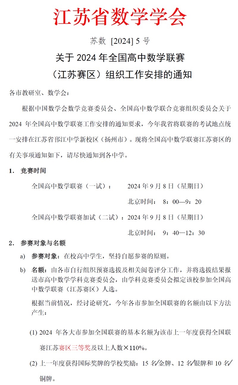 - 省级一等奖获得者有机会参加中国数学奥林匹克竞赛(CMO)